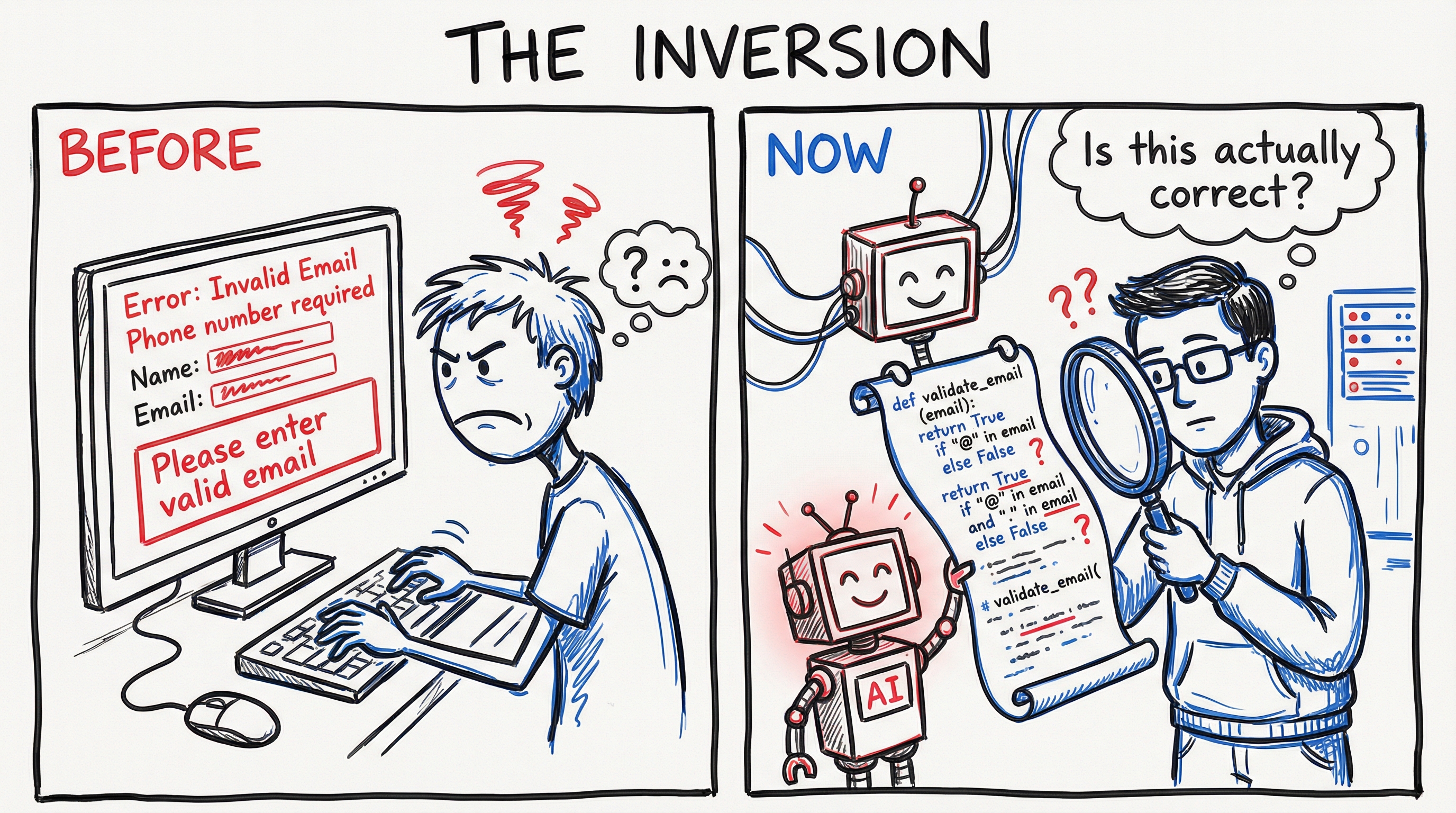 This is the new job. Not writing code. Designing the system that makes AI-generated code trustworthy.