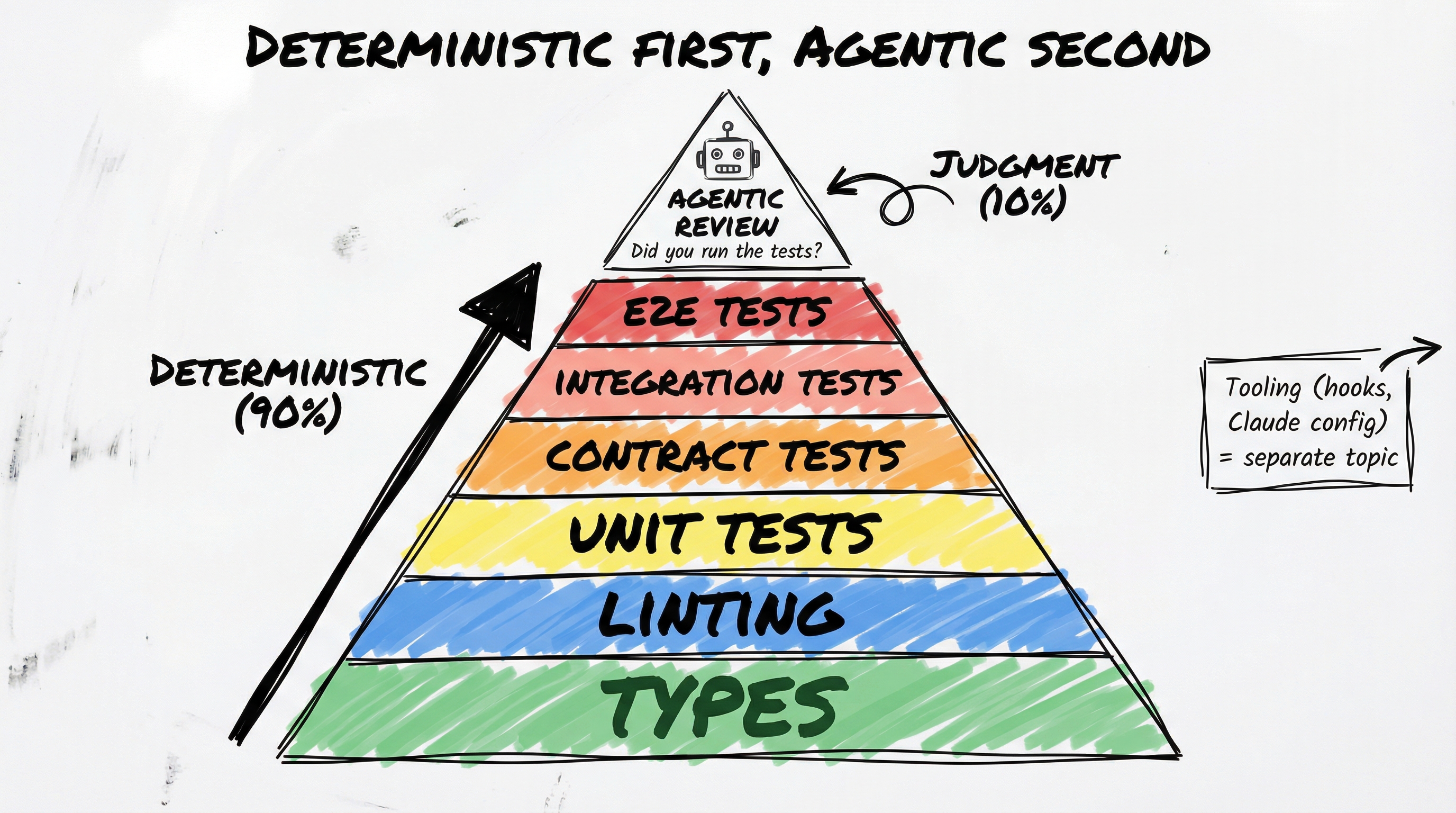 If you flip this ratio, if you rely on agentic review for things that could be checked deterministically, you're building on sand.