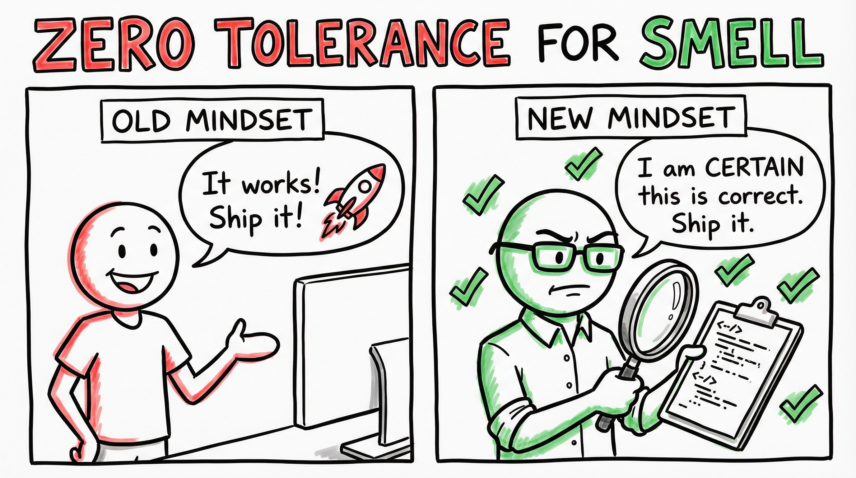 The old mindset was "it works, ship it." The new mindset is "I'm certain this is correct, ship it."