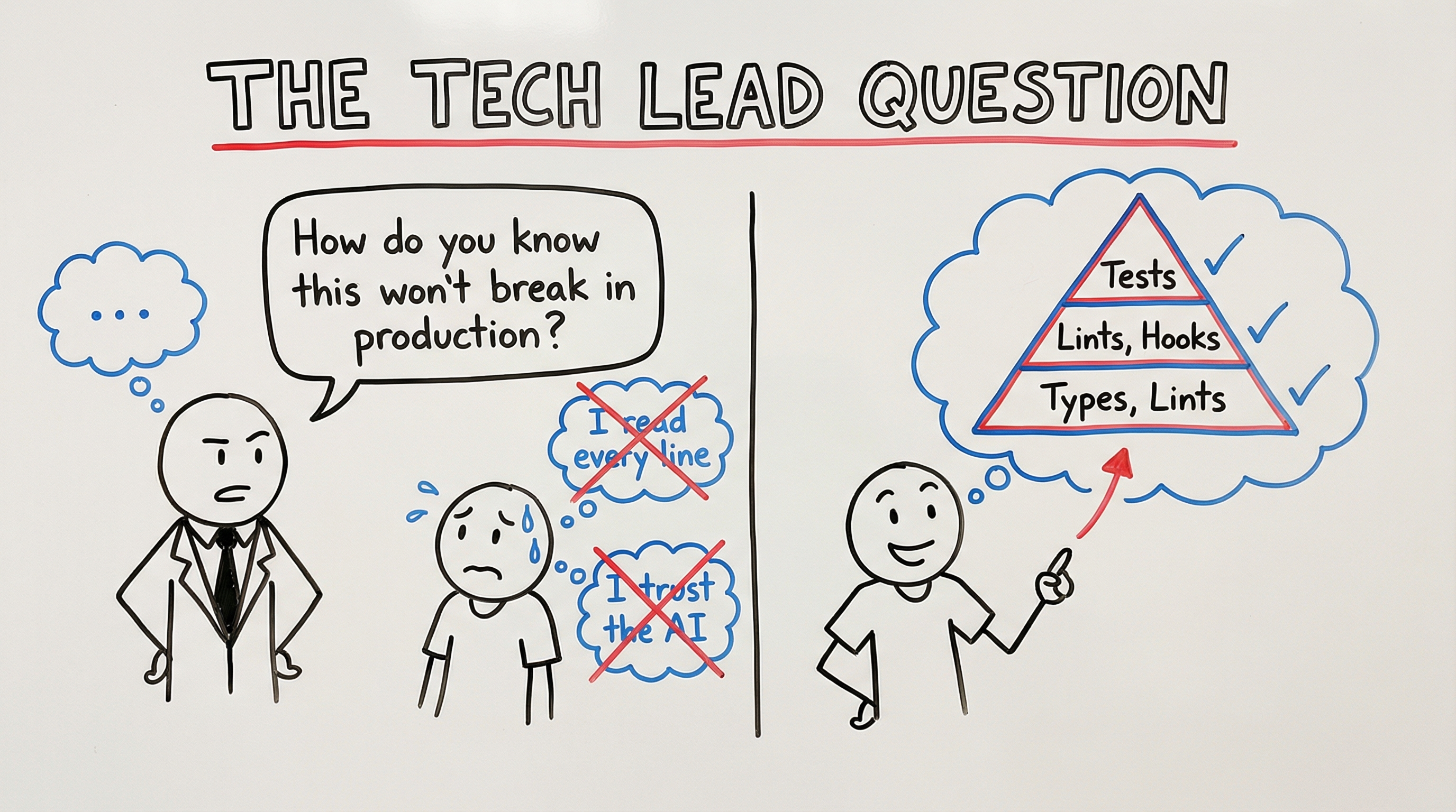 This is the new job. Not writing code. Designing the system that makes AI-generated code trustworthy.
